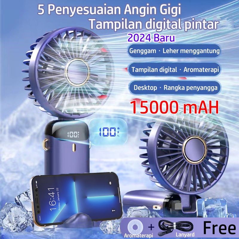 Nama produknya adalah 2024 Kipas Angin Mini Portable Usb 15000 mAh Kipas Lipat / Leher 5-Speed Wind LED Display Dengan Aromaterapi. waktu tulisan ini diupload sudah terjual 38273 pcs. Harga yang ditawarkan pun terjangkau, produk dengan rating 4.8 dari 5 bintang ini ditawarkan dengan harga mulai 74990 rupiah.